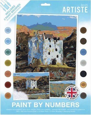 Obrázek na kartonu 395 x 295 mm, 14 x akrylové barvy a štětec. Akrylová barva poskytuje dobré krytí na desce, která je potištěna jednoduchým designem, který je číslován, aby děti vedly, kde použít vhodnou barvu. Tento projekt je navržen tak, aby umožnil začínajícímu umělci vytvořit umělecké dílo, na které může být hrdý.