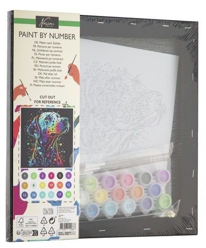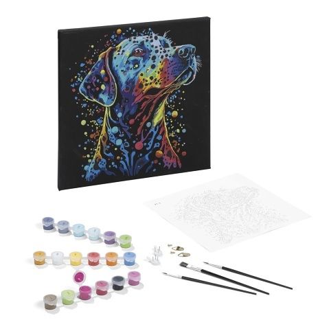 Kreativní sada pro milovníky zvířat a malování! Obrázek psa na černém plátně si můžete jednoduše vybarvit podle čísel, která odpovídají jednotlivým barvám. Malování podle čísel rozvíjí trpělivost, přesnost a smysl pro detail, přičemž hotový obrázek působí jako skutečné umělecké dílo.Obsah balení:1 plátno s předtištěným motivem, sada akrylových barev, štětec, návod. Ideální dárek pro děti i dospělé, kteří rádi tvoří a relaxují u malování.