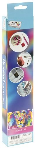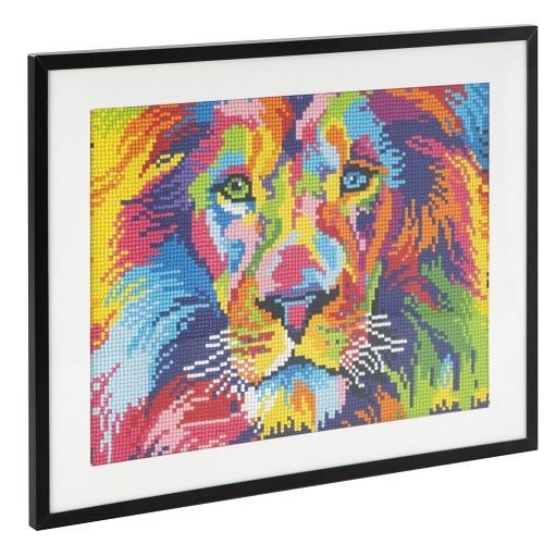 Malování pomocí kamínků Diamond -lev 30×40 cm. Součástí balení barevné kamínky a aplikátor.
