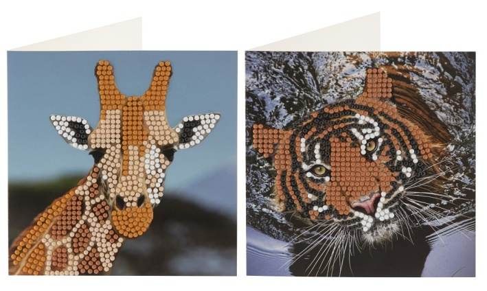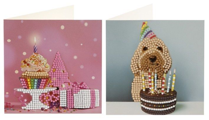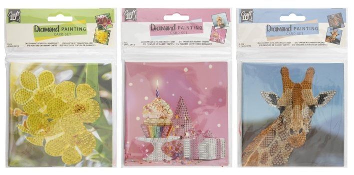 Malování pomocí kamínků Diamond přání 2 ks v balení, 3 různé druhy – květiny, zvířátka, narozeniny. Velikost obrázku 13×13cm.