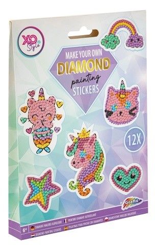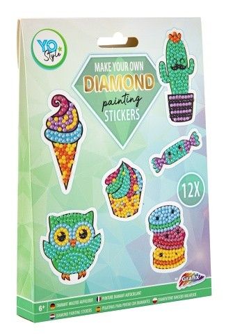 Malování pomocí kamínků Diamond – samolepky. Vytvoř si pomocí kamínků své vlastní samolepky. Balení obsahuje 9 barev kamínků, aplikátor a samolepky – 12 ks.