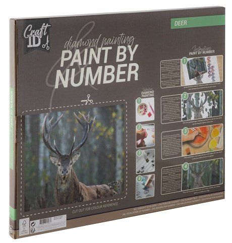Malování pomocí kamínků Diamond/podle čísel Jelen 40×50 cm. Tento obrázek kombinuje dvě techniky pomocí kamínků a malování podle čísel. Součástí balení vodové barvy, štetec, aplikátor, kamínky a obrázek.
