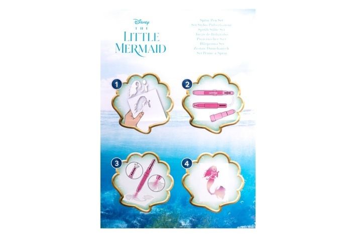 Malování s foukacími fixami Malá mořská víla – obsahuje 7 ks foukacích fixů a 6 šablon s obrázky.