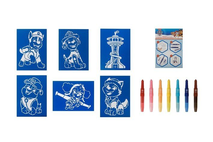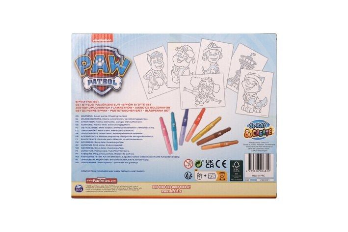 Malování s foukacími fixami Tlapková patrola- obsahuje 7 ks foukacích fixů a 6 šablon s obrázky.