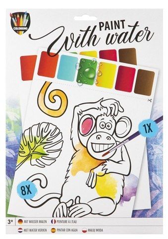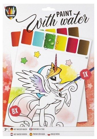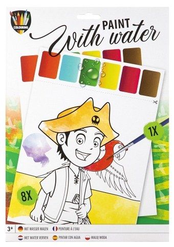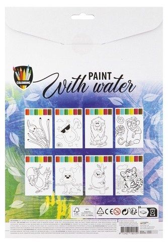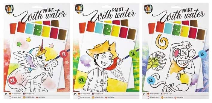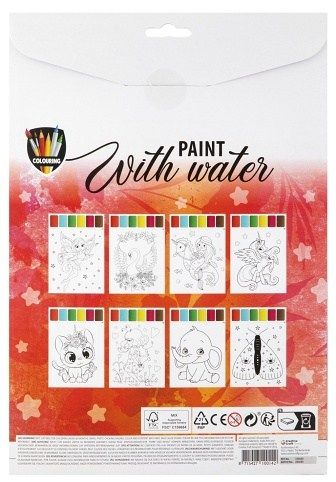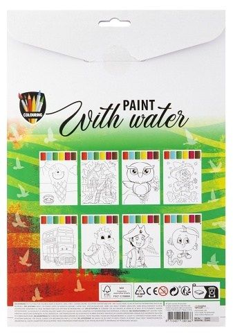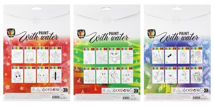 Malování vodou A4 – balení obsahuje 8 obrázků a štětec. Namočte štětec ve vodě a můžete vymalovávat. Tři různé obrázky.