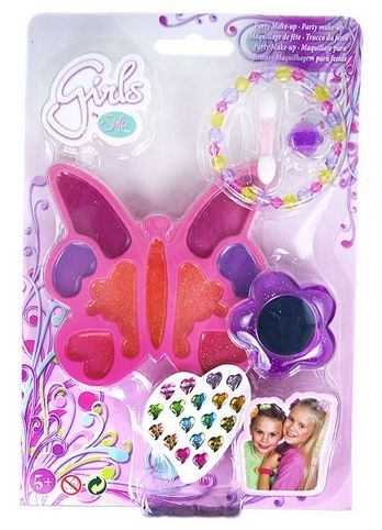 Líčidla a doplňky pro holčičky. Sada obsahuje lesk na rty, zrcátko, náramek a další. Foto je ilustrační!