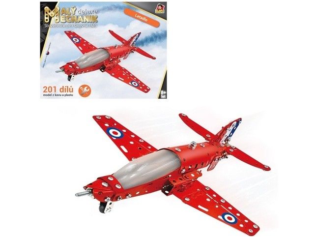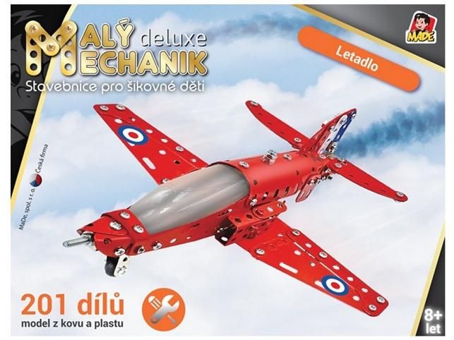 Malý mechanik - letadlo. Dětská stavebnice Malý mechanik obsahuje kovové díly a plastové doplňky, spojuje se pomocí šroubků a matiček. 201 dílků. Český box v grafickém designu řady Malý mechanik. Rozměr: 25 x 25 x 11 cmDoporučený věk: 6 +