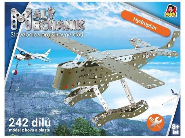 Malý mechanik - letadlo 242 ks. Sestavte si letadlo podle návodu nebo podle vlastní fantazie. Stavebnice je skvělým vstupem do světa techniky. Rozvijí dětskou motoriku, kreativitu, manuální zručnost a představivost. Učí děti trpělivosti a samostatnému řešení problému. Odměnou bude vlastnoručně sestavený výrobek, se kterým si dítě užije další spoustu zábavy. Dětská stavebnice Malý mechanik obsahuje kovové díly a plastové doplňky, spojuje se pomocí šroubků a matiček. Balení obsahuje 242 dílků. Součástí každé sady je šroubovák a klíč pro povolování a utahování. Český box v grafickém designu řady Malý mechanik. Stavebnice je určena pro děti 8+. Rozměr hračky je 29,5 x 32 x 14cm. Materiál hračky je plast a kov. Balení hračky je box.