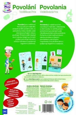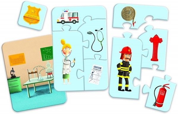 Povolání jsou vzdělávací hra s puzzle pro malé děti, ve které se seznámí s tím, co jednotlivé profese obnáší, a jaké nástroje se při jejich výkonu používají. Při hraní si děti zlepšují slovní zásobu týkající se různých profesí, procvičují mluvení o určitých tématech a podprují kognitivní zvědavost.