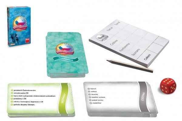 Hra obsahuje: 99 karet, 1 bloček, 1 tužku, 1 bodovou hrací kostku, pravidla.