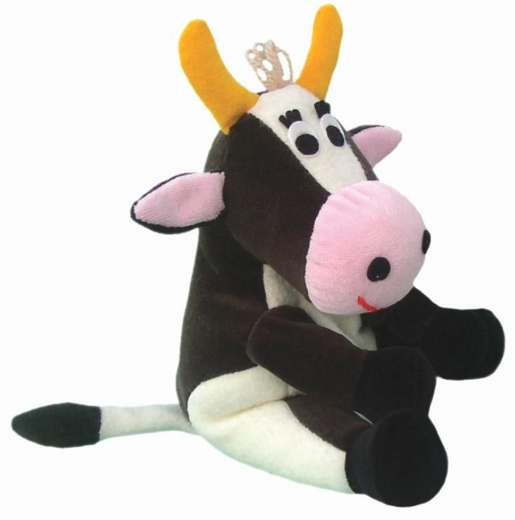 S maňáskem kravičkou, která je vycpaná a sama sedí, mohou hrát divadlo velcí i malí, díky příjemnému materiálu poslouží jako polštářek do postýlky nebo hračka na spaní.