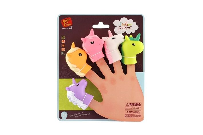 Maňásek prstový jednorožec 5ks guma 6cm na kartě 16,5x20cm