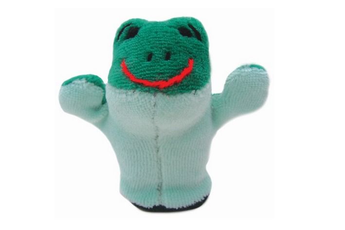 Prstového maňáska žabka navlečete na dětský prstík nebo na prst dospělého a můžete si hrát. Doma, v postýlce, v autě i na výletě. Vejde se do malé dětské kapsy jako kamarád na cestu nebo do postýlky, když se dětem nechce usínat o samotě.