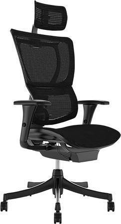 Kancelářská židle v klasické černé barvě. Síťovaná záda, nastavitelná opěrka hlavy, měkké područky spolu s kvalitním sedákem dopřávají výborný komfort při dlouhé práci.