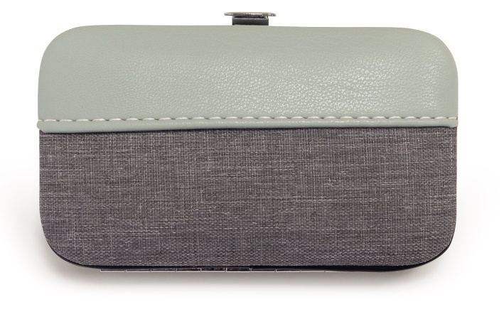 Cestovní manikúrní set 6 ks v šedozeleném provedení. Stříbrná sada obsahuje nůžky, kleštičky na nehty, zkosenou pinzetu, pilník, manikúrní tyčinku a zatlačovač kůžičky. Ideální velikost do kabelky či na cesty.