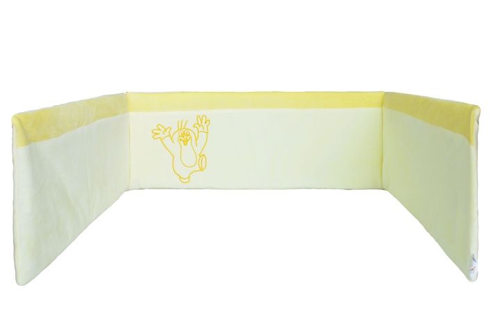 Ochranný límec do postýlky z heboučkého mikroveluru, uchycení pomocí stužek. Ideální pro šířku postýlky 65cm. Rozměr: 160x23cm. Materiál: 67 % bavlna, 33 % polyester. Pratelné na 40°C.