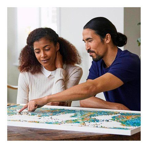 Tato nová interpretace klasické mapy světa vám umožní dát na odiv svou kreativitu. Stavějte podle přiloženého návodu nebo si přizpůsobte oceány k obrazu svému a vytvořte vlastní jedinečnou mapu. Dokonce můžete přesouvat kontinenty a vybrat si, která část světa bude ve středu. K dispozici navíc máte i barevné špendlíky z kostek na označení významných míst.
