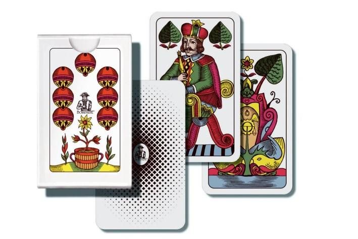 Klasická karetní hra. 32 listů, jednohlavé. V papírové krabičce.