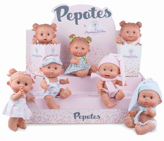 Ručně vyrobená vonící španělská panenka s celovinylovým tělem a realistickým vyobrazením miminkovských faldíků včetně pohlaví. Lehká dlouhodobá vůně panenky vydrží několik měsíců až let, dle intenzity případného namáčení do vody. Panenka je v případě řádného vysušení vhodná i ke koupání. Pokud by nebyla vysušená, na vinylu se může vytvořit plíseň a poškodit ji. Přenosný košíček je součástí balení. Velikost 26 cm. Balení: display, assort 8 druhů, každá panenka stojí v papírovém kornoutku. Doporučený věk od 3 let.