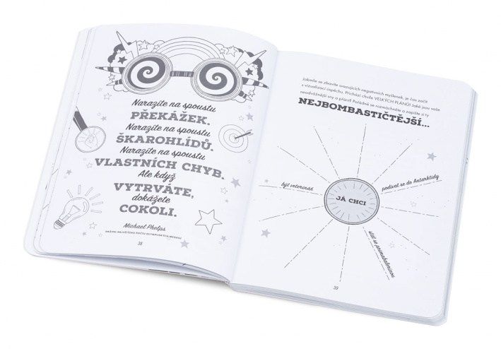 Pro všechny, kdo potřebují na začátku své cesty ke hvězdám malinko popostrčit (což ostatně potřebuje každý), vytvořil úspěšný sportovec a autor světových bestsellerů Matthew Syed tenhle atraktivní zápisník. Takže neváhejte, chopte se tužky, a ať už máte v malíčku Mathewovu úžasnou knihu Máš na to!, anebo jste se rozhodli začít rovnou praktickým nácvikem různých technik, jež vám tu autor představí a které vás dovedou k úspěchu, vydejte se pro pořádnou porci sebedůvěry! Protože když to máte dobře srovnané v hlavě, dokážete (skoro) všechno, co si usmyslíte – počínaje písemkou z matiky přes žákovské přebory v plavání až po kariéru kosmonauta nebo osadníka Marsu. Kdo ví, třeba jednou změníte svět, nebudete-li se bát využít naplno svůj potenciál...