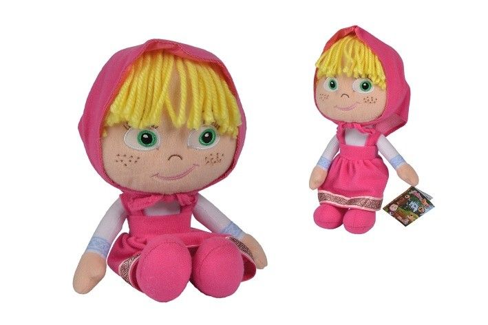 Plyšová panenka Máša ze seriálu Máša a medvěd, díky pohyblivým nohám může stát i sedět. Velikost 25 cm.