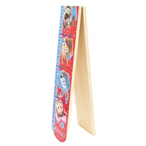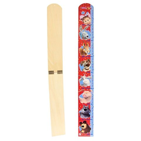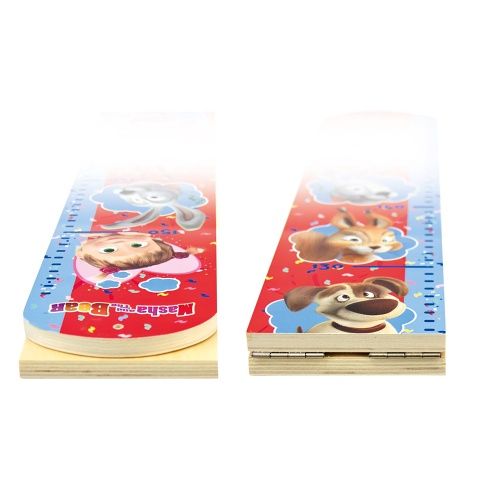 Barevný metr vyrobený z MDF-desky potištěný vtipnými motivy ze známého dětského seriálu „Máša a medvěd“ je skvělou dekorací do každého dětského pokoje. Malý otvor v záhlaví umožňuje snadné připevnění na zeď. Tištěná stupnice pro měření je v rozmezí od 80 cm do 160 cm výšky.