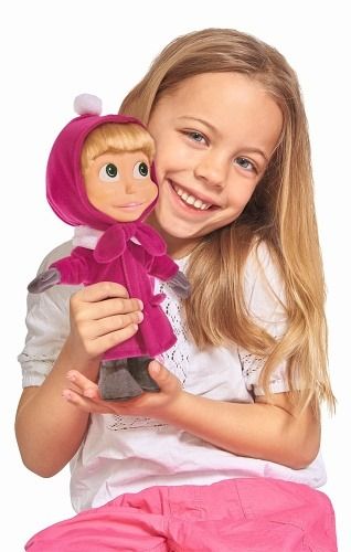 Panenka Máša z dětského seriálu Máša a medvěd v zimním oblečku s čepičkou, měkké tělíčko. Výška panenky 23 cm.