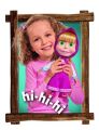 Panenka Máša z oblíbeného seriálu Máša a medvěd s měkkým tělíčkem. Když ji zatřeseš nebo ji vyhodíš do výška, začne se smát. Velikost 30 cm.