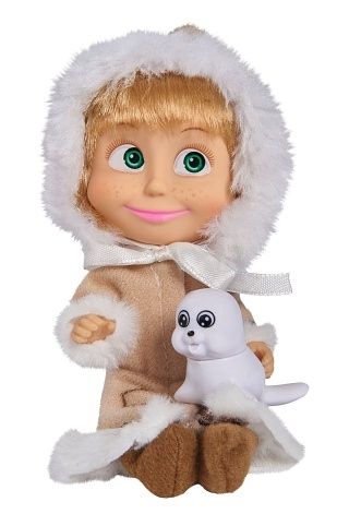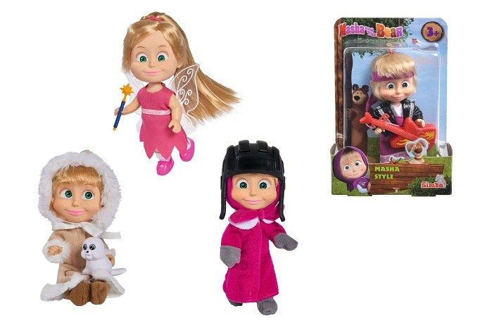 Panenka Máša z dětského seriálu "Máša a medvěd" v nepřehlédnutelném oblečku. 4 druhy. Výška panenky 12 cm.