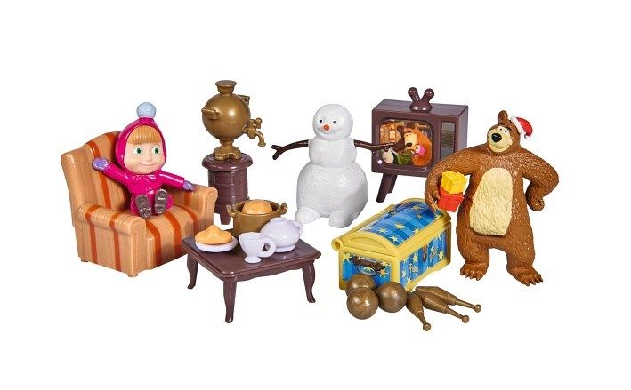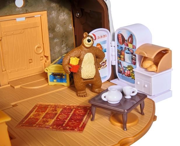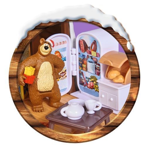 Zimní dům medvěda z oblíbeného dětského seriálu "Máša a medvěd" je skládací, součástí figurka medvěda a Máši v zimním provedení, sněhulák a spousta dalších doplňků, rozměry rozloženého domečku: 19 x 21 x 15 cm.