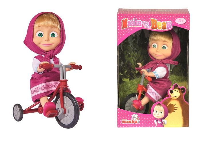 Panenka Máša z dětského seriálu "Máša a medvěd" na tříkolce. Výška panenky 12 cm.