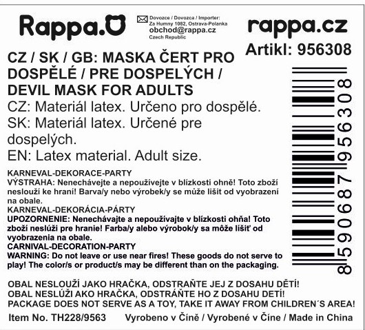 Latexová maska s motivem čerta nesmí chybět ve tvé karnevalové sbírce! Maska je vhodná na Halloween párty, vánoční besídku i karneval. Maska je na gumičku. Paráda!
