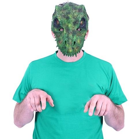 Děsivá maska dinosaura v zelené barvě je parádním doplňkem ke kostýmu. Gumovou masku lze připevnit na gumičku. Vystraš své kamarády touto hrozivou maskou a zažij spoustu legrace.
