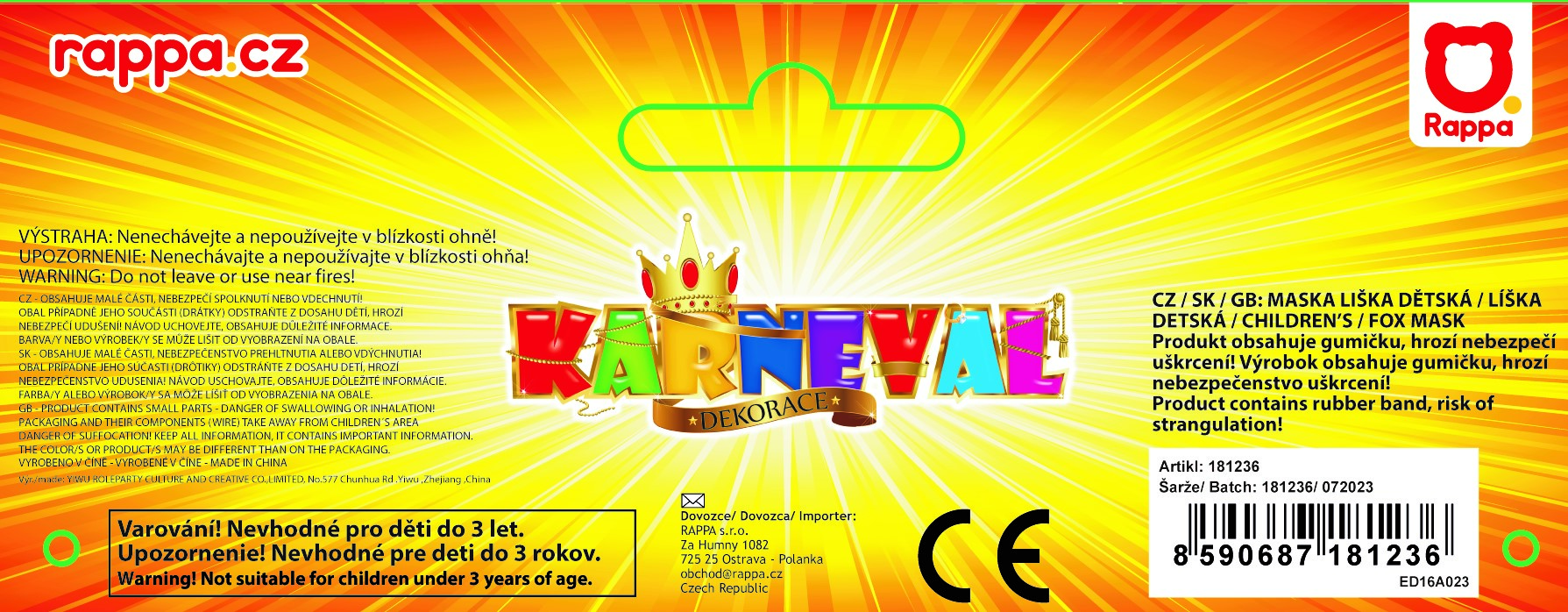 Senzační maska na obličej s motivem lišky. Maska drží na gumičku, která je k masce připevněna. Staň se hvězdou večírku díky této senzační masce a ohrom všechny své kamarády!