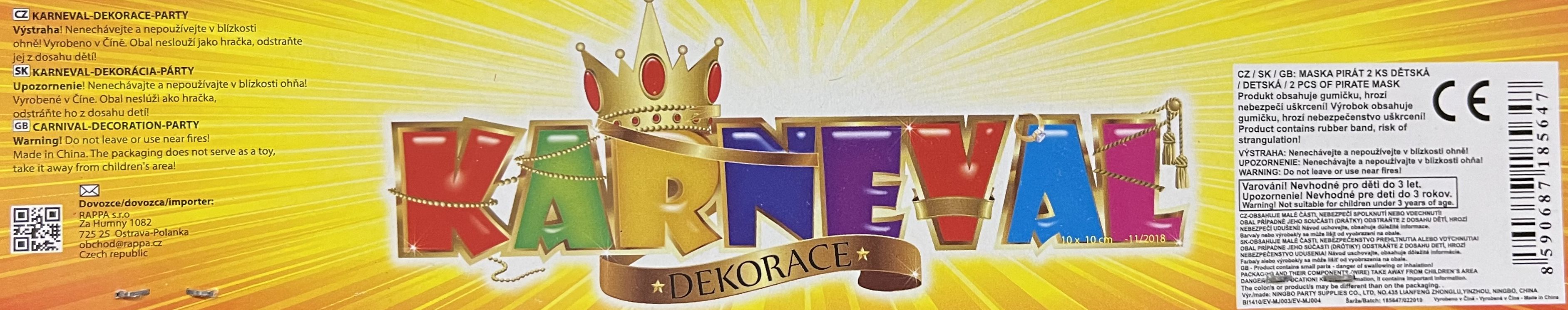 Maska pirátská 2 ks v sáčku