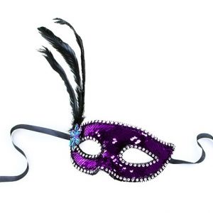 Elegantní plesová maska/škraboška na zavázání pro opravdové dámy! Tento parádní kousek je lemován kamínky a zdoben flitry. Na jedné straně je dekorován květinou a péry. V barevném provedení černá nebo fialová.