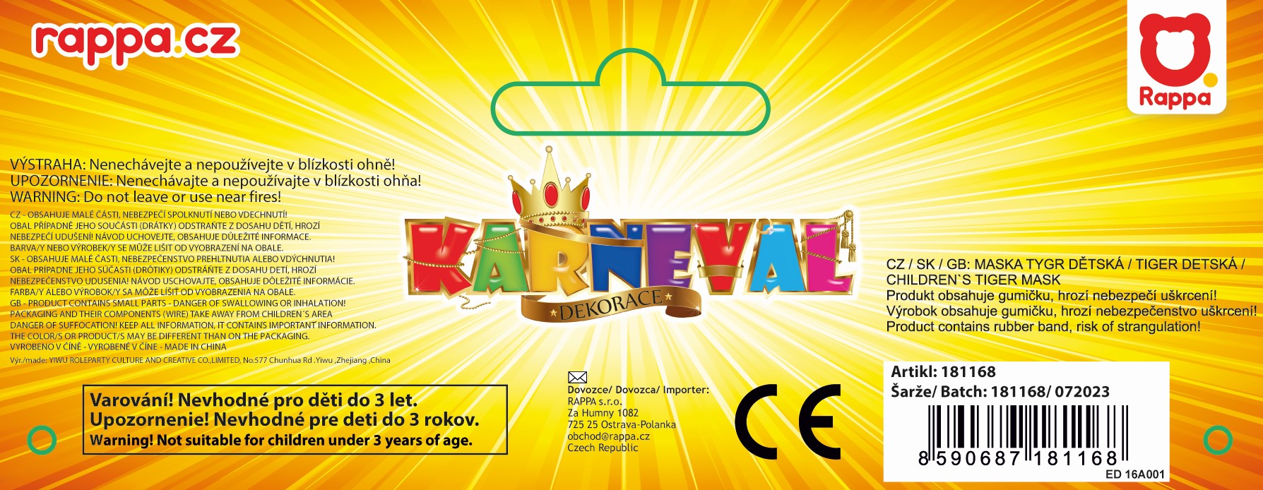 Senzační maska na obličej s motivem bílého tygra. Maska drží na gumičku, která je k masce připevněna. Staň se hvězdou večírku díky této senzační masce a ohrom všechny své kamarády!