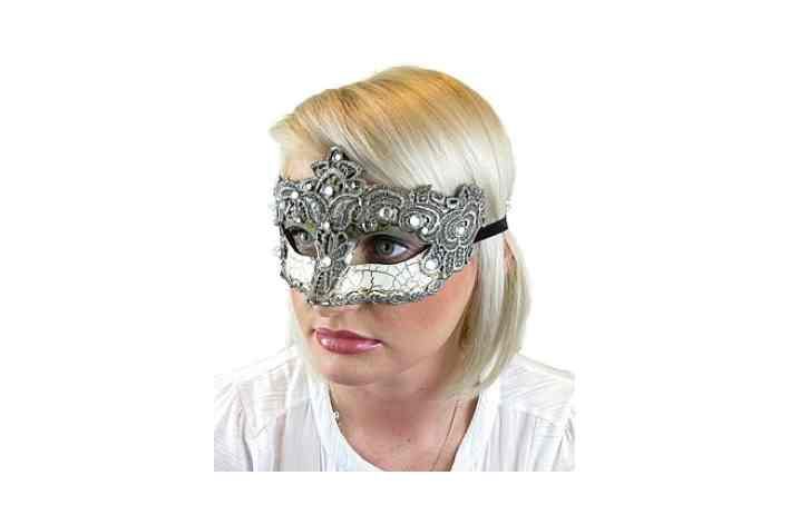 Maska(škraboška) na oči s diamanty stříbrná