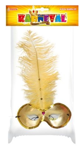 Elegantní škraboška na gumičku pro opravdové tanečnice! Tento parádní kousek je zdoben hebkým peřím, flitrovým lemováním a oslnivými drahokamy. Senzace!