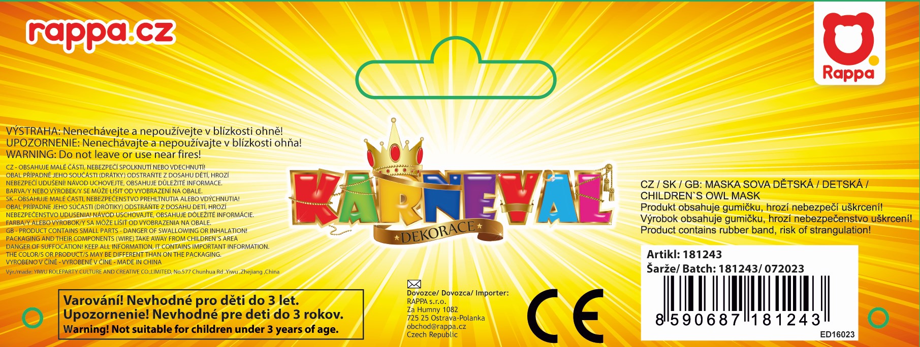 Senzační látková maska (škraboška) sova je parádním doplňkem ke kostýmu.