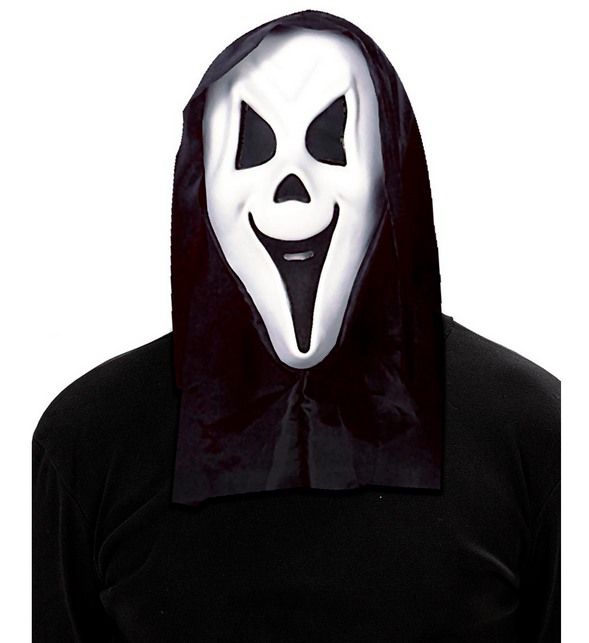 Vřískot - bílá maska s kapucí,z pěnové gumy.