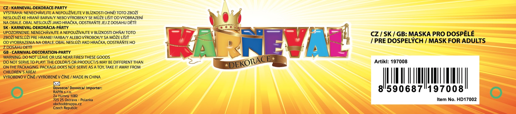 Senzační textilní maska je perfektním doplňkem na halloweenskou párty nebo karneval. Vystraš své kamarády touto hrozivou maskou a zažij spoustu legrace!