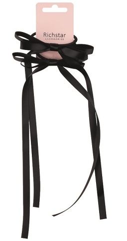Mašle do vlasů na gumičce černá 10,5 x 1 cm + 24 cm stuha, 2 ks