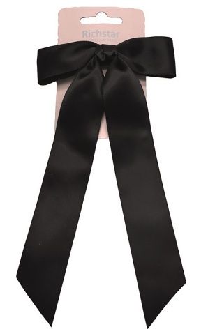 Mašle do vlasů na sponce černá 11,5 x 3,5 cm + 18 cm stuha