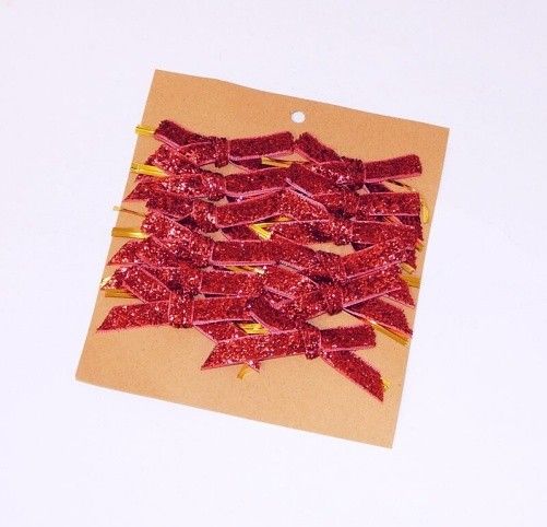Mašle sametová úzká červená třpytivá 8 cm, 12 ks / 5915
