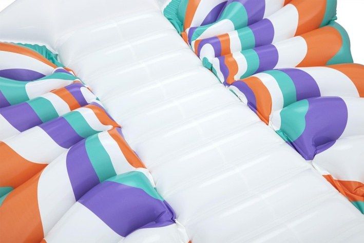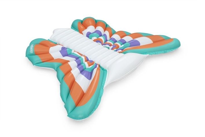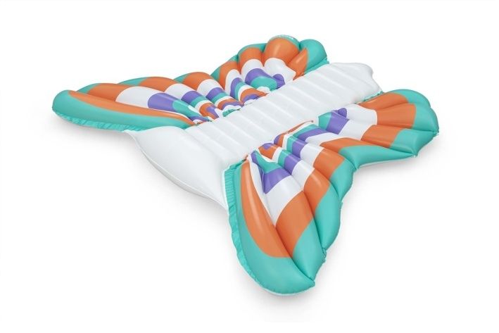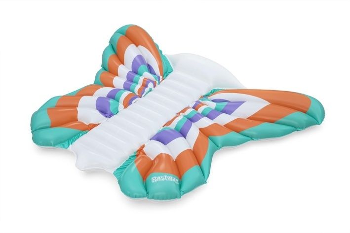 Matrace Motýl nafukovací je navržena ve tvaru motýla o rozměrech přibližně 193 × 176 cm, což poskytuje dostatečný prostor pro pohodlné ležení a relaxaci na vodě. Její výrazný barevný design kombinuje tóny oranžové, zelené, fialové a bílé, které vytvářejí vtipný a atraktivní vzor připomínající křídla motýla. Matrace je vyrobena z pevného, odolného materiálu s ochrannou vrstvou Color Shield™, která zajišťuje, že barevný potisk nepřenáší barvu na mokrou pokožku a zároveň udržuje jasnost a sytost barev i při opakovaném použití. Konstrukce matrace je pevná a stabilní, což umožňuje bezpečné používání s maximální nosností až do 100 kg. Povrch matrace je mírně žebrovaný a nafouknutý středový pás zaručuje pohodlné opření zad, zatímco křídla motýla jsou nafouklá a zajišťují dostatečnou plovoucí stabilitu. Nafukovací ventil je dobře přístupný a zajišťuje rychlé a snadné nafouknutí i vyfouknutí matrace. Součástí balení je také opravná záplata, která pomáhá řešit případná poškození a prodlužuje životnost produktu. Matrace je ideální pro použití v bazénech, na jezerech či u moře a je určena především pro venkovní a sportovní aktivity. Díky své velikosti a designu je vhodná jak pro relaxaci, tak i pro zábavu na vodě. Její výrazný motýlí tvar a barevný vzor přitahují pozornost a přinášejí do vodního prostředí hravý a stylový prvek. Díky snadné manipulaci a skladnosti je matrace vhodná i pro rodinné výlety a dovolené.