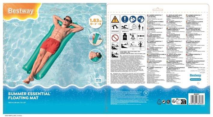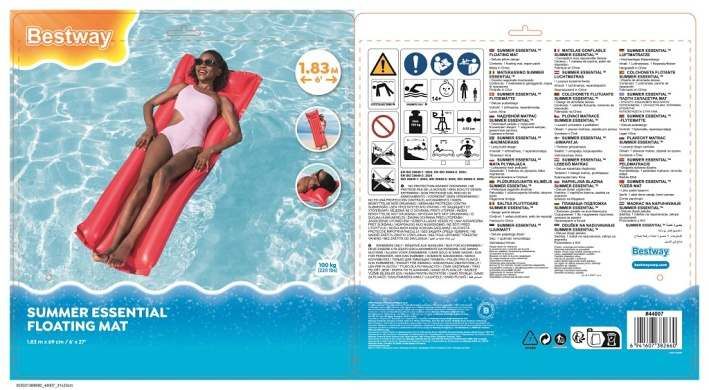 Nafukovací matrace o velikosti 183cmx69cm je vyrobena z masivního vinylu. Matrace má dvě vzduchové komory, zabudovaný polštář. Maximální nosnost je 90 Kg.