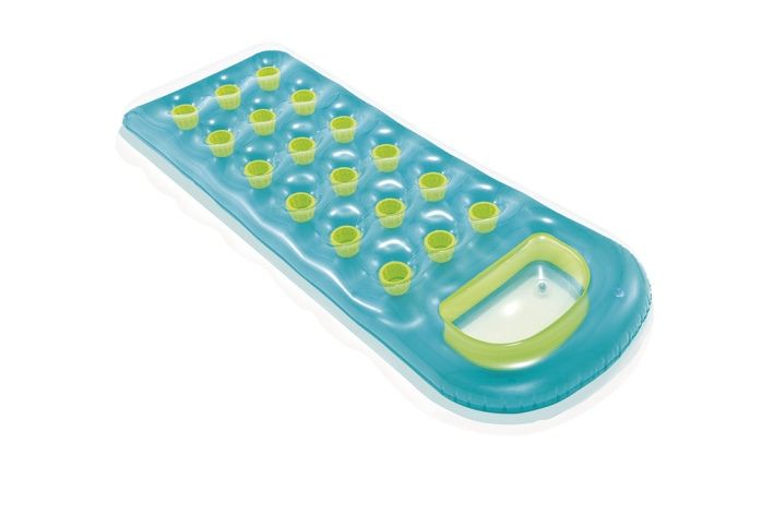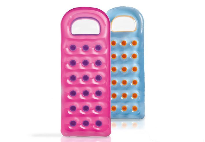 Vodní lehátko s okýnkem, 18-ti kapsové o velikosti 188×71 cm. Dvě vzduchové komory, vrchní vrstva průsvitná a spodní s berevnými kapsami. Dvě barevné provedení. Tvarovaný polštář pro extra komfort. Opravná sada přiložena. Vyrobeno z kvalitního vinylu.