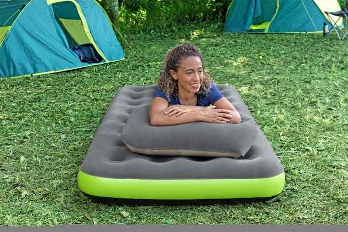 Velikost nafouknuté matrace je cca 188 × 99 × 22 cm. Matrace je vhodná pro 1 osobu s maximální nosností 150 kg. Doba nafouknutí: 50 sekund (5–7 stlačení). Vyrobeno z odolného vinylu. Robustní konstrukce s coil-beam.