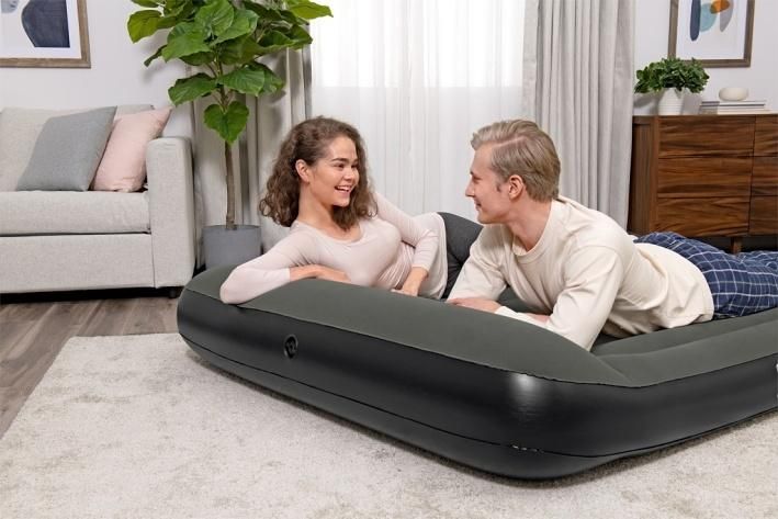 Velikost nafouknuté matrace je cca 2.03m x 1.52m x 30cm. Matrace s maximální nosností 300 kg. Opravná záplata je součástí balení.